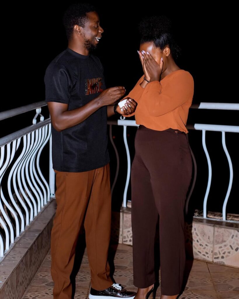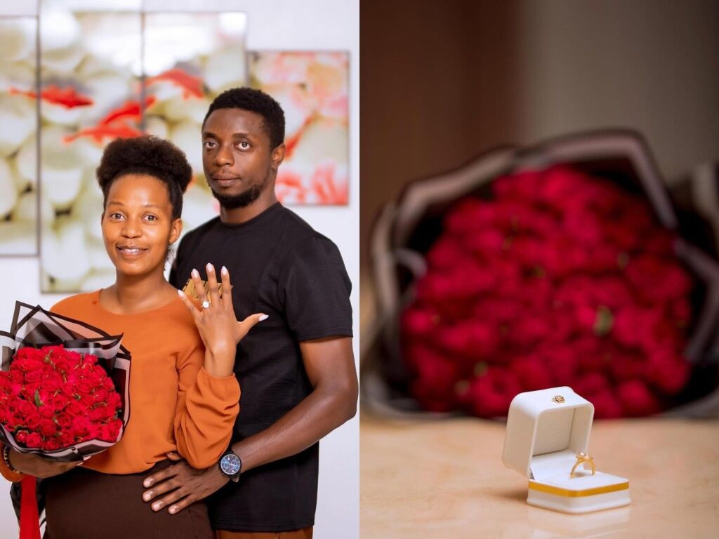 Mu gitondo cyo kuri uyu wa Gatatu, tariki ya 4 Gashyantare 2026, uyu munyarwenya yifashishije urukuta rwe rwa Instagram asangiza amafoto atandatu ari kumwe n’umukunzi we Uwizeyimana Josiane ubwo yamwambikaga impeta, maze ayaherekesha amagambo avuga ko batangiye urudashira.