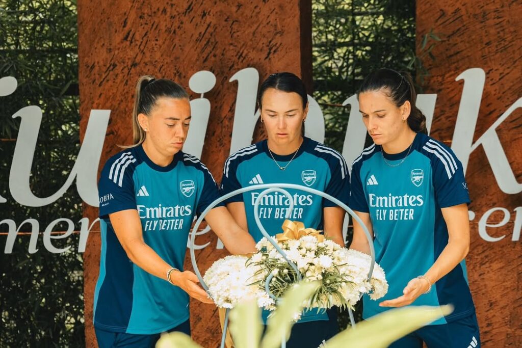 Abakinnyi batatu b’ikipe y’abagore ya Arsenal, barimo kapiteni w’iyi kipe Katie McCabe, Caitlin Foord na Laia Codina, basuye Urwibutso rwa Jenoside yakorewe Abatutsi rwa Kigali ruherereye ku Gisozi, bunamira inzirakarengane ziharuhukiye.