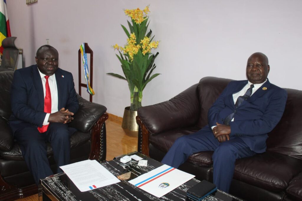 Mu ruzinduko yagiriye muri Central African Republic, umunyamabanga Mukuru wa FPR Inkotanyi Amb. Christophe Bazivamo yagiranye ibiganiro n’umunyamabanga nshingwabikorwa w’ishyaka Mouvement Cœurs Unis (MCU), Nyakubahwa Matthieu Simplice Sarandji.