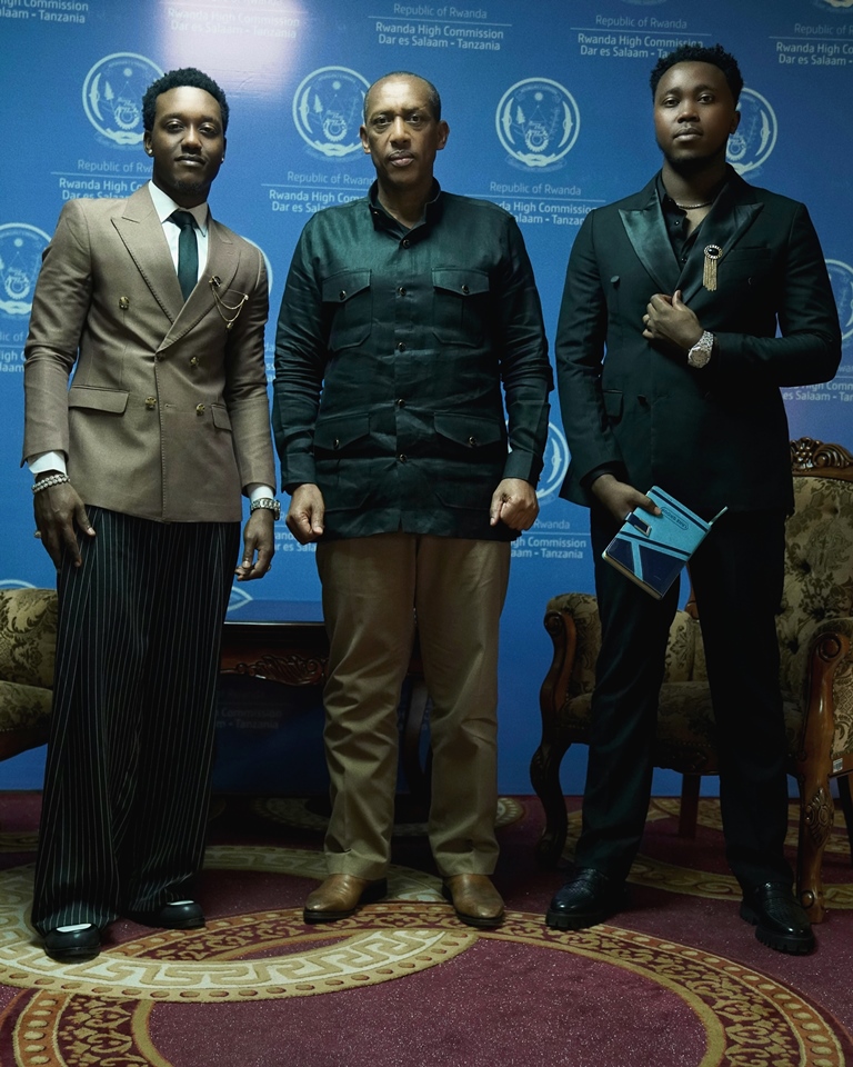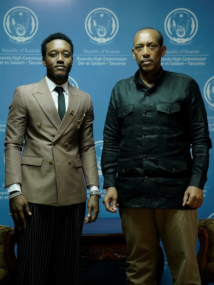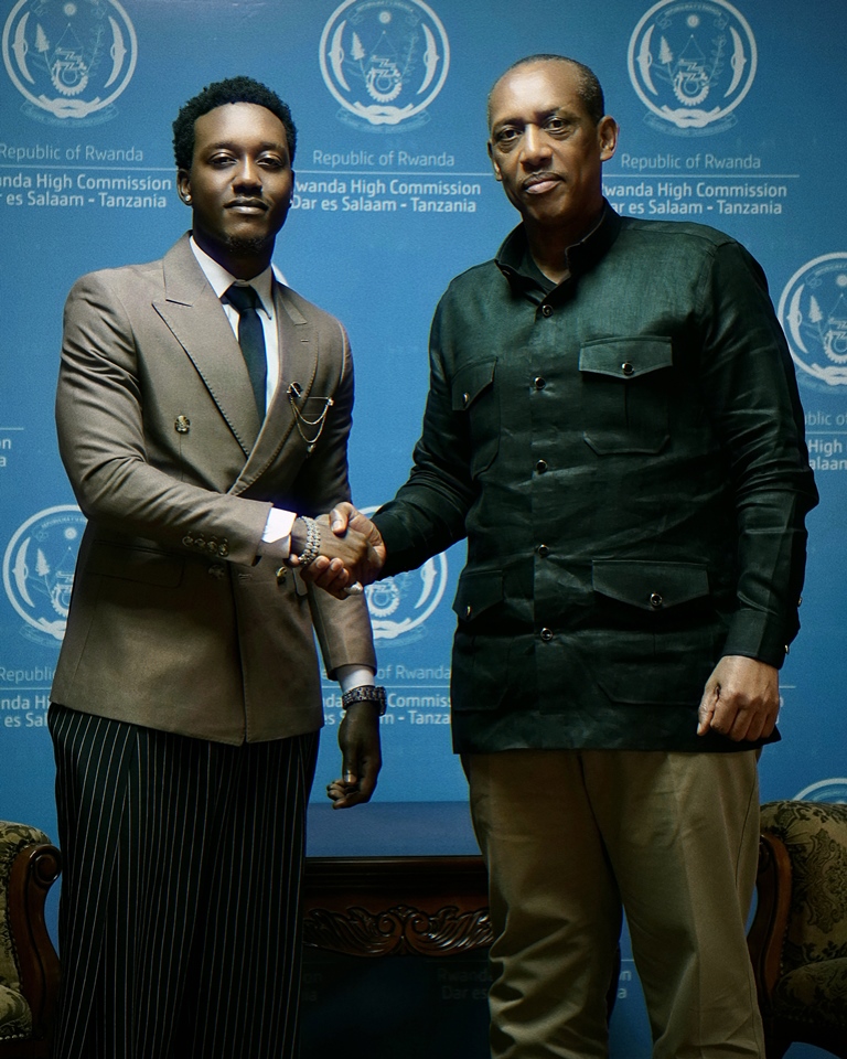 Ambasaderi w’u Rwanda muri Tanzania, Gen Patrick Nyamvumba, yakiriye Umuhanzi w’umunyarwanda, akanatunganya umuziki, Fred Mugisha Robinson uzwi nka Element , EleéeH, muri muzika, uri muri icyo gihugu, bagirana ibiganiro.