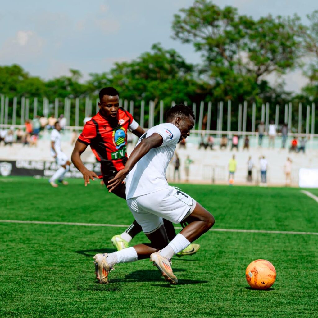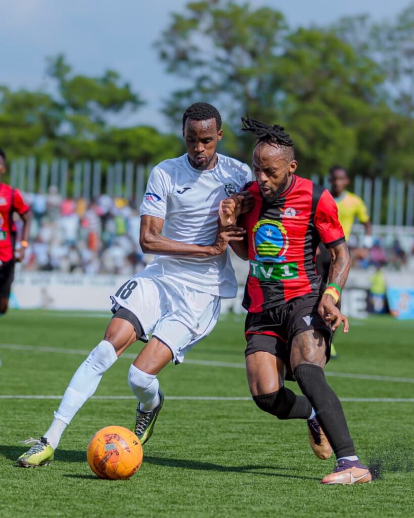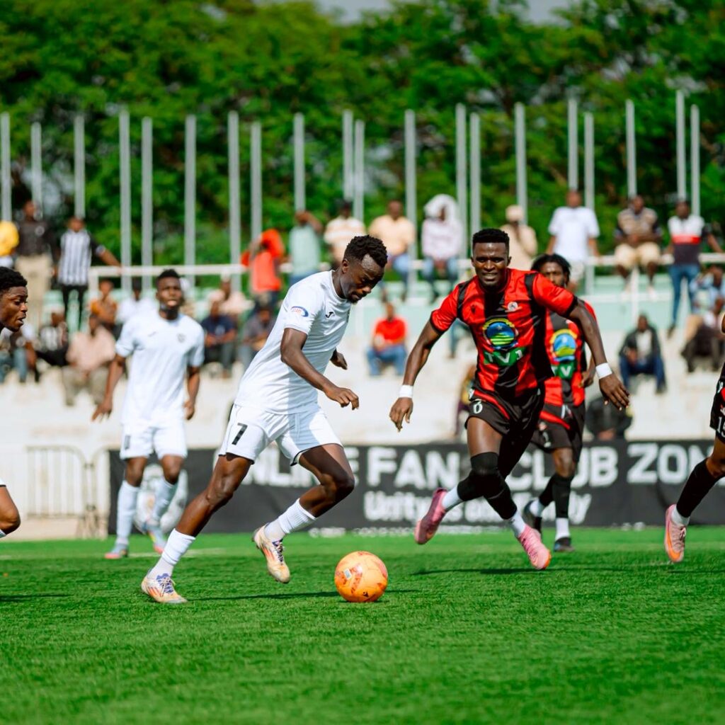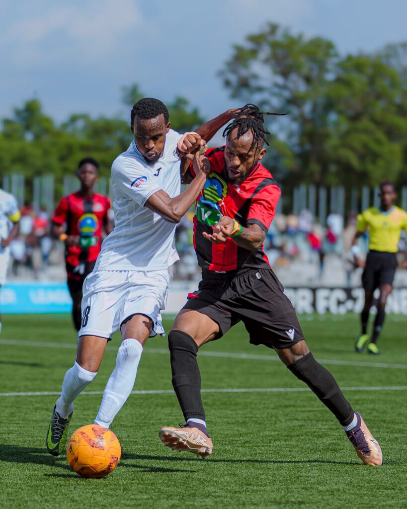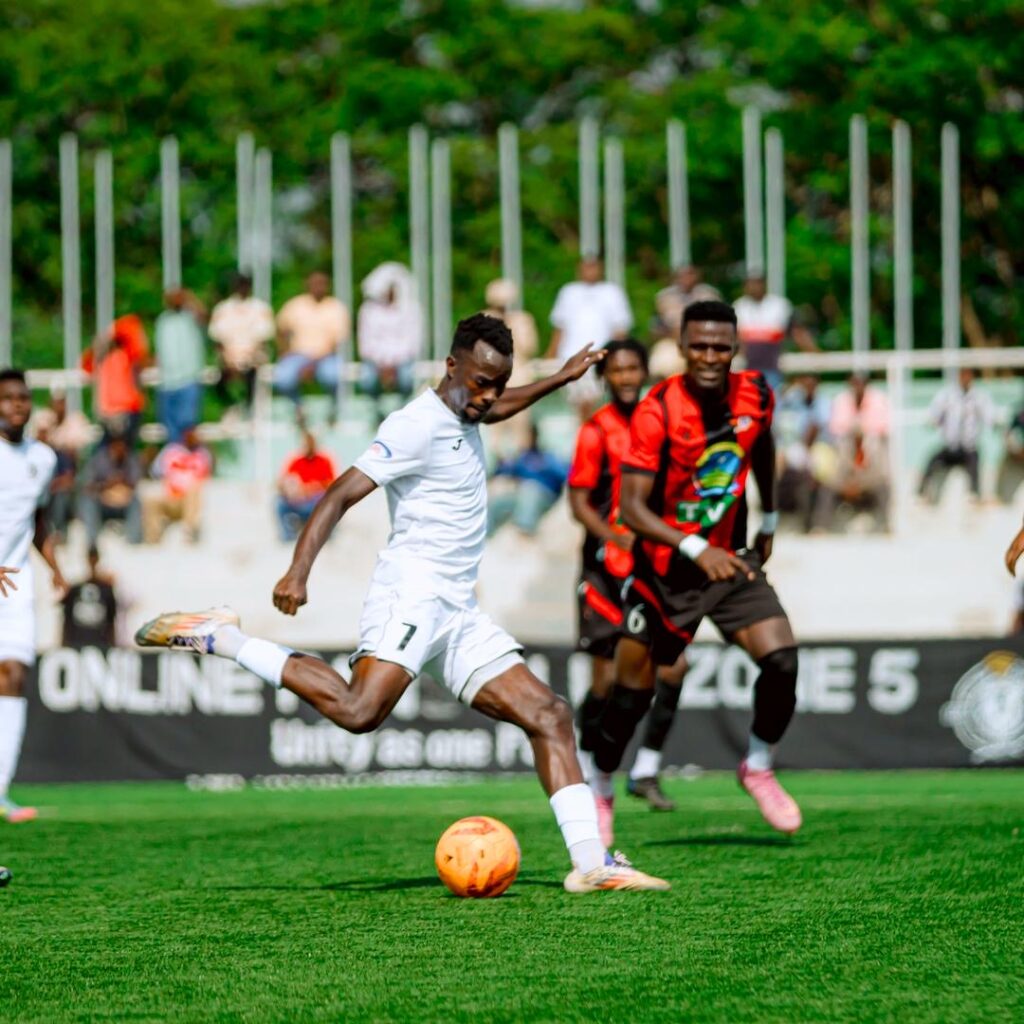 Ku munota wa 12′ Hakim Kiwanuka wari wahushije uburyo bwa mbere yakiriye umupira acomekewe mu rubuga rw’amahina awuhindura neza awushyira mu buryo bwe, yohereza mu rushundura igitego cya mbere kiba kiranyoye.