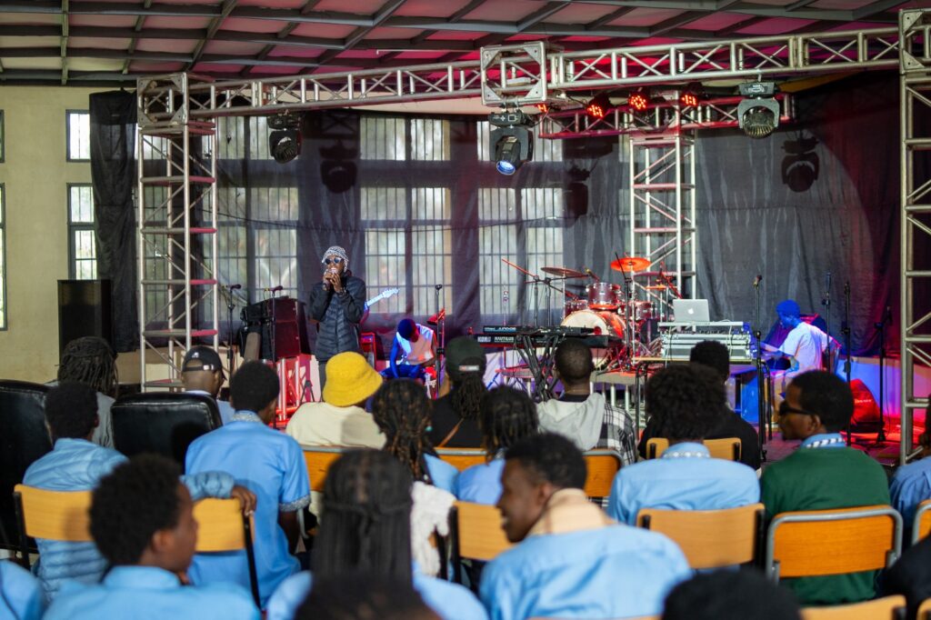 Ariel Wayz yaganirije abanyeshuri bo ku Nyundo uko iri shuri ryamuharuriye inzira mu rugendo rwe rwa muzika.