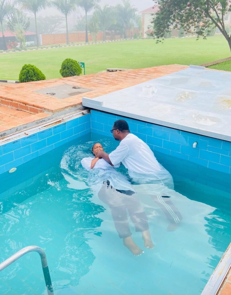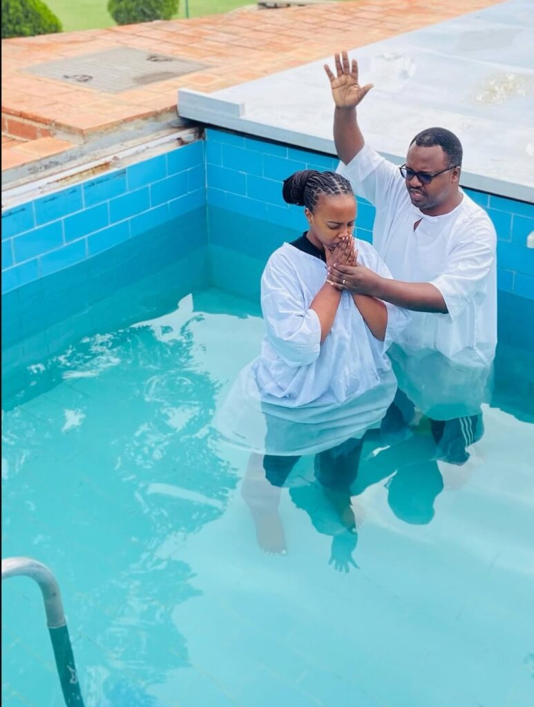 Kwizera Emelyne uzwi cyane nka “Emelyne Ishanga” yabatijwe mu mazi menshi yemera kwakira yesu nk’umwami n’umukiza.