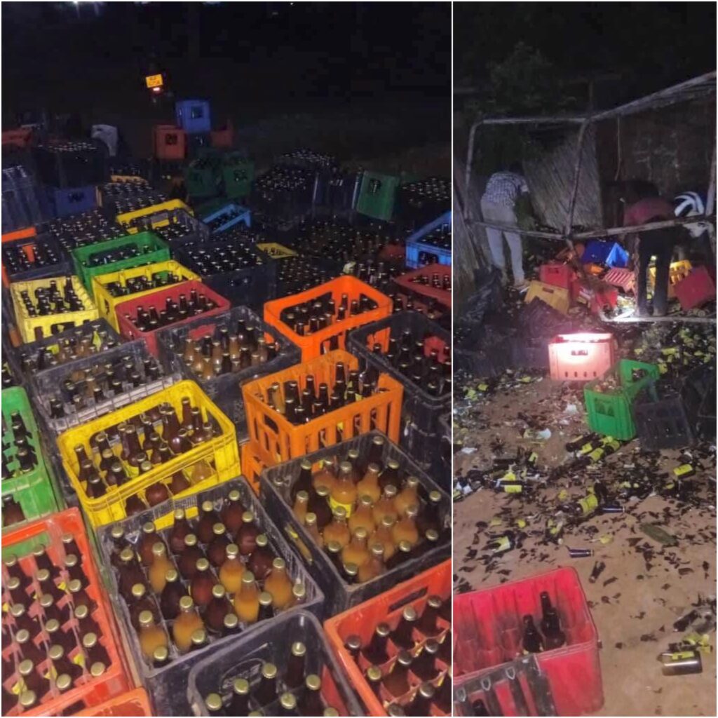 The seized alcohol was publicly destroyed after residents were sensitized on its dangers. Police urged the public to report illegal production and warned offenders to seek lawful business activities as enforcement operations continue.