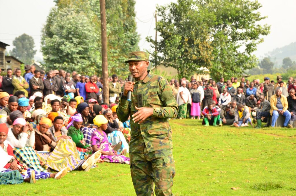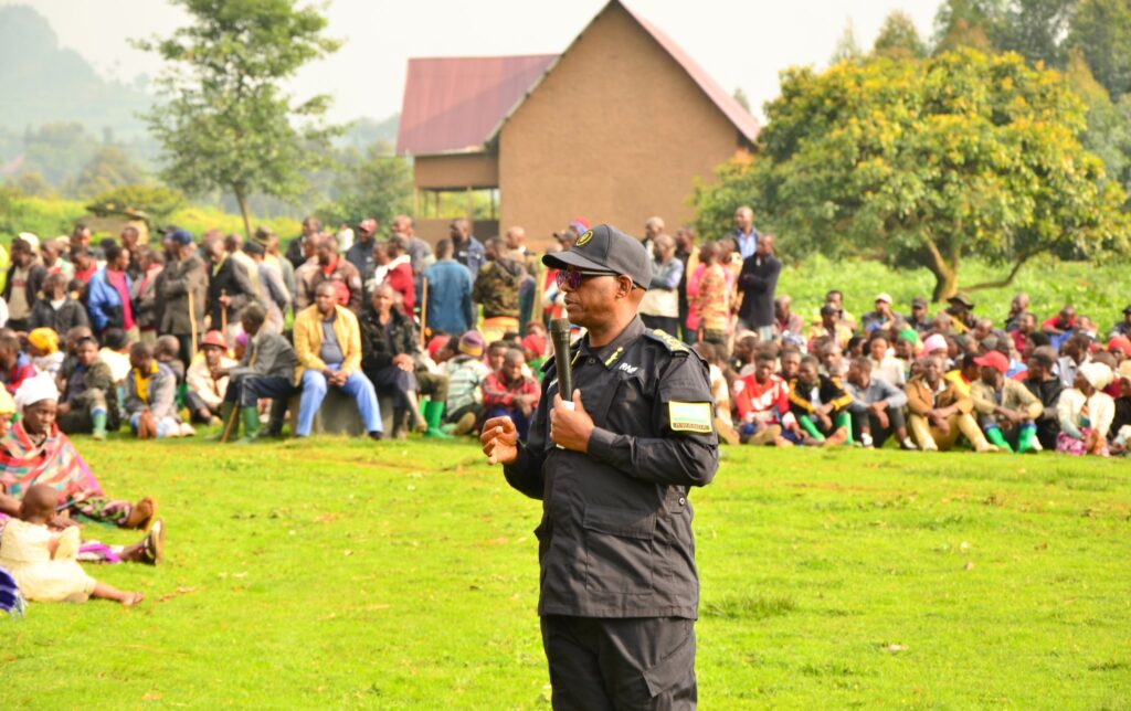 Addressing the meeting, Rwanda Defence Force representative Col. Sesonga reminded residents that security begins at the community level, calling on citizens to distance themselves from activities that threaten public safety, including drug trafficking, smuggling, and family disputes. He further cautioned against harboring or collaborating with terrorist groups, emphasizing the importance of sharing information with security organs.