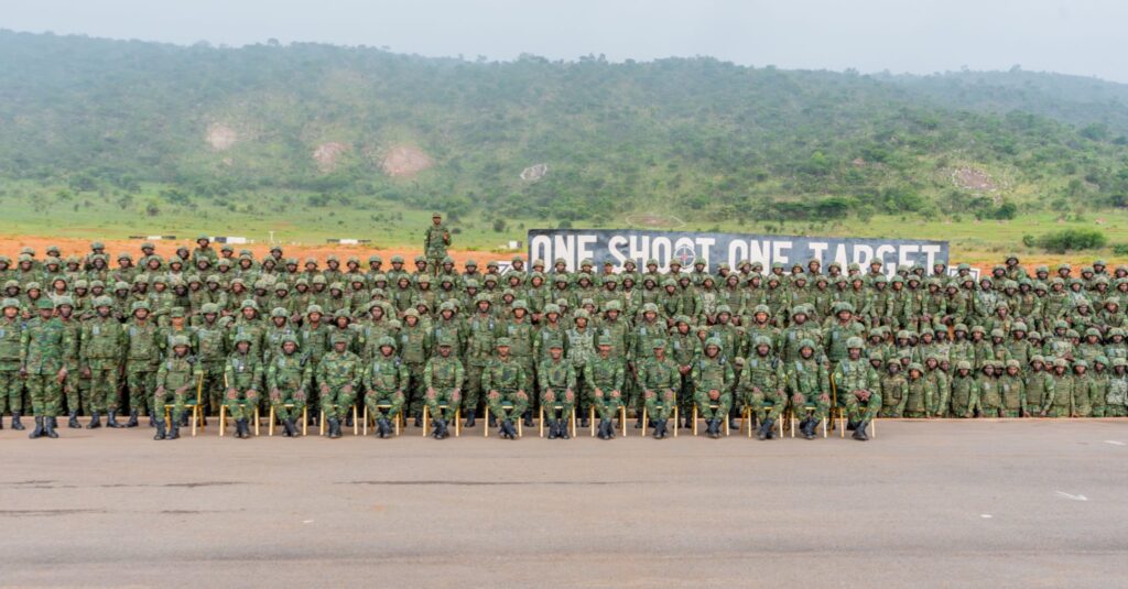 Uyu muhango wo gusoza amahugurwa waranzwe n’imyitozo itandukanye ya gisirikare, yagaragaje ubumenyi n’ubushobozi abasirikare bungutse.