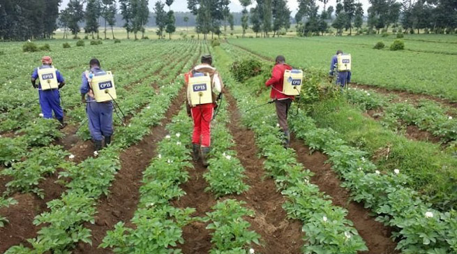 46,9% by’abahinzi bakoresheje imiti irwanya indwara z’ibihingwa aho yakoreshejwe na 45,2% by’abahinzi bato na 91,4% by’abahinzi banini.