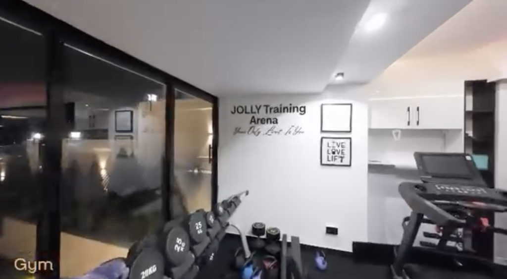 5. Muri iyi nzu kandi hari igice kiswe, Jolly Training Arena, aho azajya akorera siporo ndetse ikaba ishobora gufasha abantu barenze umwe gukora siporo, bivuze ko mu gihe yagize abashyitsi bakunda siporo bashobora gufatanya.
