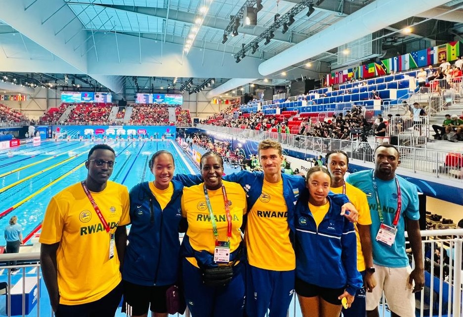 Abakinnyi bahagarariye u Rwanda ni Aragsan Mugabo, Kevin Kaiga, Keza Kalisa, na Oscar Cyusa Peyre Mitilla, bajyanye na Perezida wa Federasiyo y’umukino wo koga mu Rwanda (Rwanda Aquatics Federation), Cynthia Munyana.