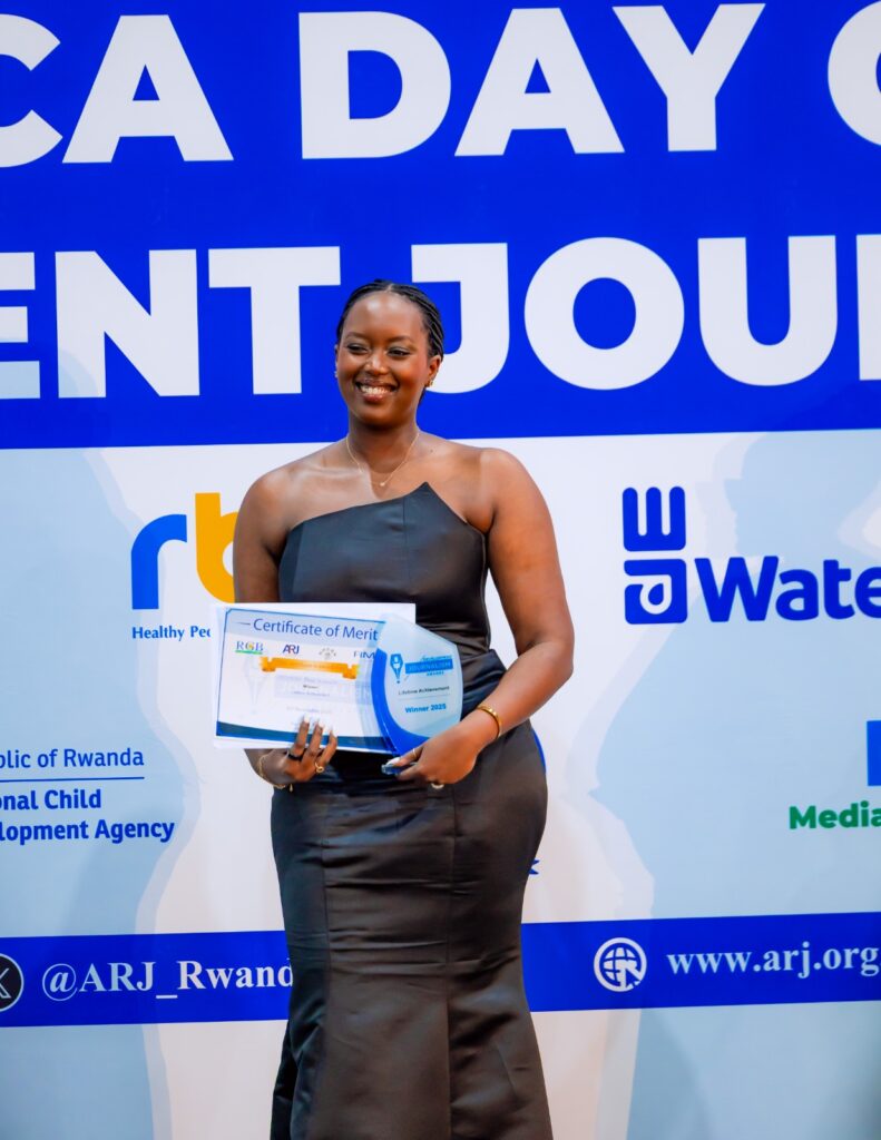 Nizeyimana Abdoul Koudusi wa Energy Radio yegukanye igihembo mu cyiciro cy’inkuru zivuga ku bijyanye no gukoresha ikoranabuhanga, Samuel Kwizera wa Radio Umucyo ahabwa igihembo cy’inkuru za radiyo zivuga ku mikurire y’umwana.