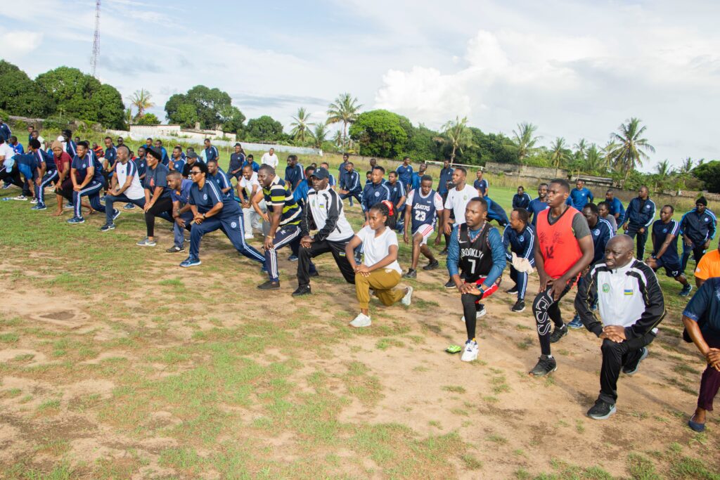 Inzego z’Umutekano z’u Rwanda (RSF) ziri  mu Ntara ya Cabo Delgado mu Majyaruguru ya Mozambique, ku wa 21 Ukuboza 2025,  bitabiriye igikorwa cya siporo  rusange aho bari kumwe n’abaturage ndetse n’ abayobozi b’inzego z’ ibanze.