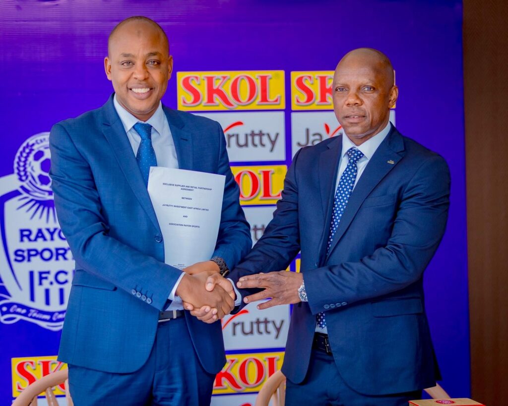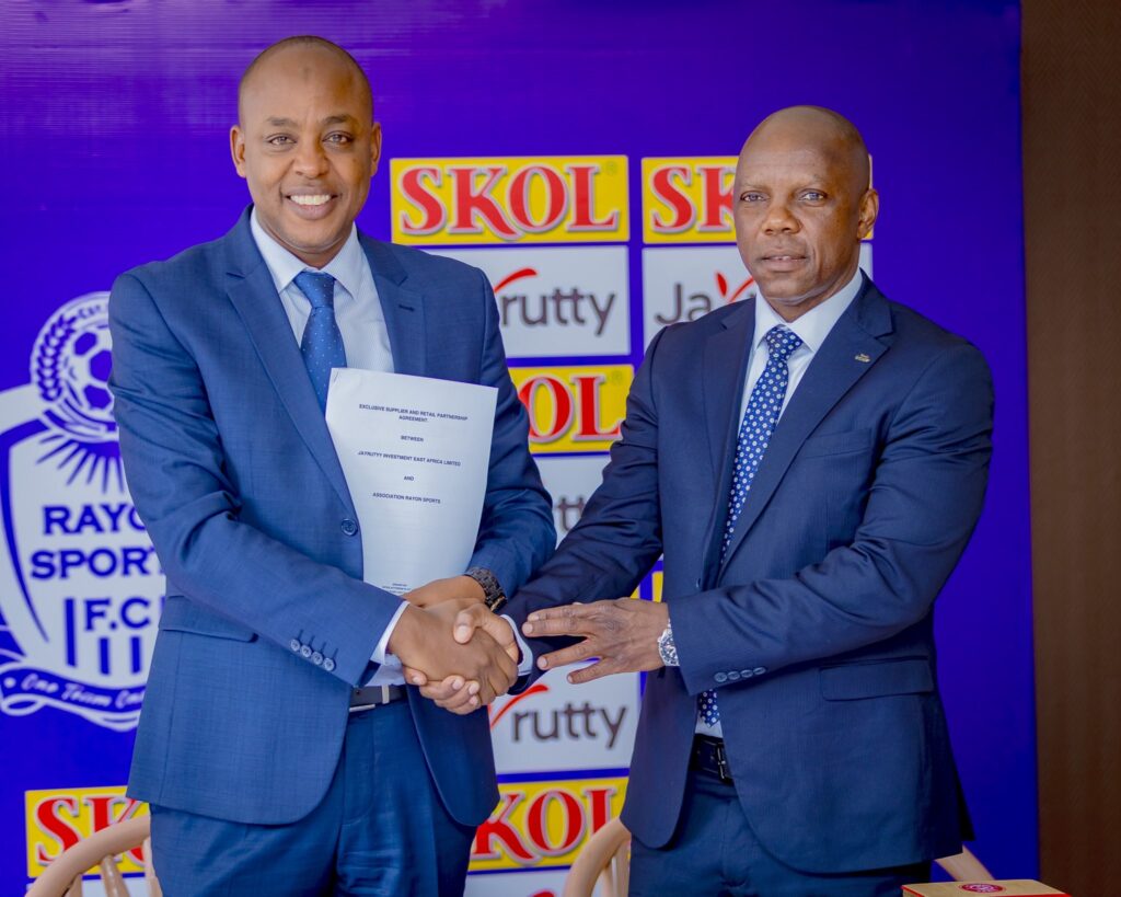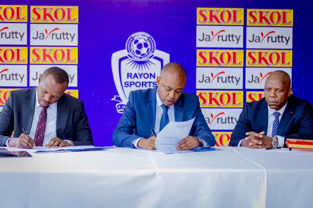 Rayon Sports yari isanganywe Uruganda rwenga ibinyobwa bisembuye n’ibidasembuye rwa SKOL Ltd nk’umuterankunga mukuru bagiftanye imikoranire, ndetse n’abandi batandukanye.