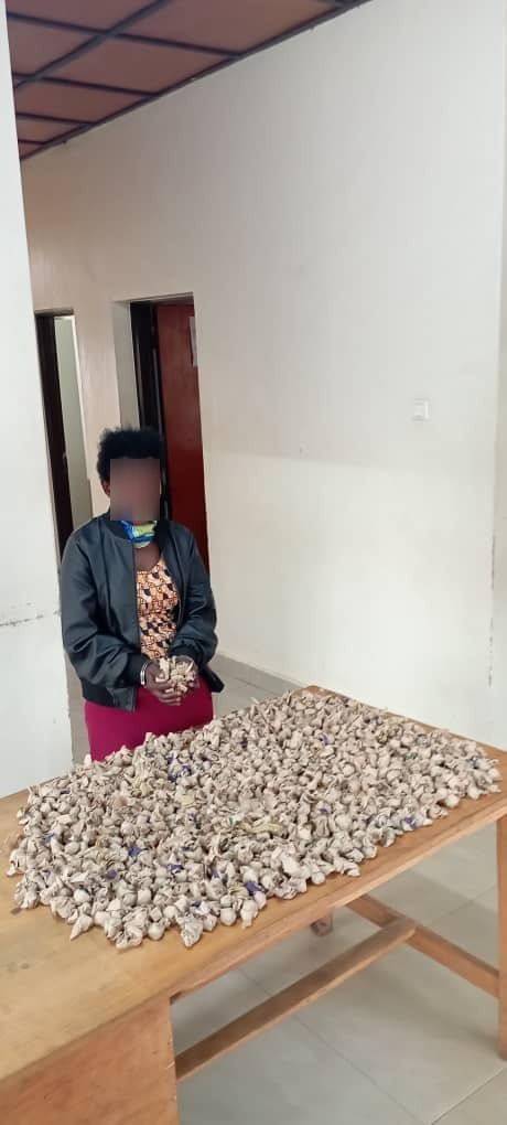 Polisi y’u Rwanda yatangaje ko Ishami ryayo rishinzwe kurwanya ibiyobyabwenge (ANU) rikorera mu mujyi wa Kigali ryafatanye umugore udupfunyika 800 tw’urumogi acuruza.