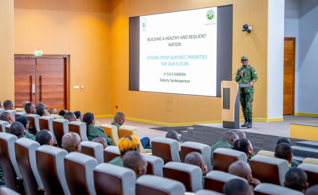 Umuvugizi Wungirije w’Ingabo z’u Rwanda, Lt Col Simon Kabera, yaganiriye n’abayobozi n’abakozi ba Minisiteri y’Ubuzima n’izindi nzego zishamikiyeho, abagaragariza isano riri iri hagati y’umutekano w’igihugu, ubuzima rusange n’ubushobozi bw’igihugu bwo kwiyubaka.
