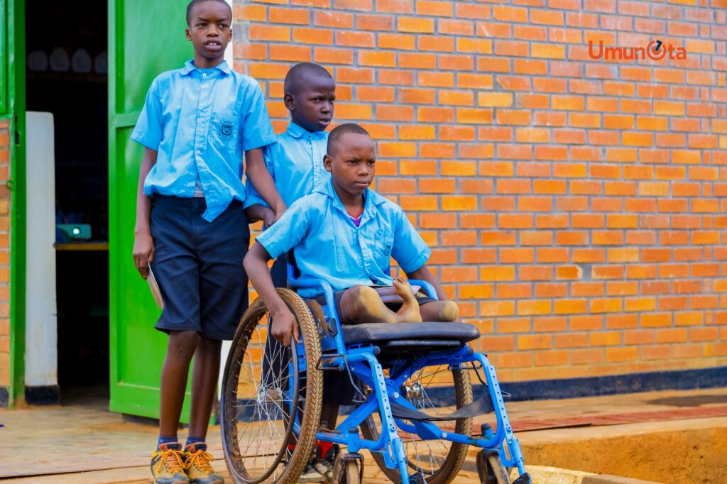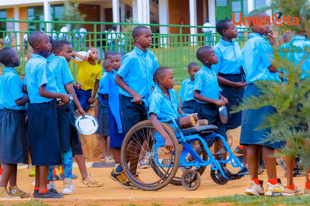 Ati” Nk’uko mubizi dufite abana bafite ubumuga kandi iyo tutabyitayeho neza, aba bana ntabwo babona amahirwe yo kugirango bige nk’abandi, rero tubishyiramo imbaraga kugirango abana b’Abanyarwanda bose bashobore kubona amahirwe yo kwiga, ubwo rero abana bafite ubumuga, cyangwa se bafite ibibagoye ngo bashobore kwiga tubitaho by’umwihariko.”