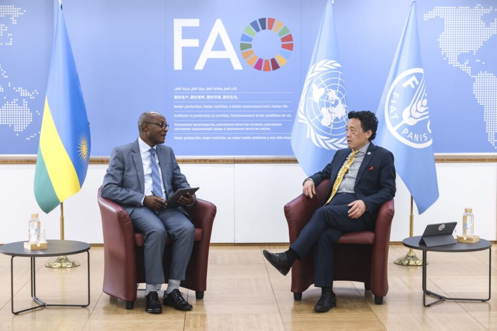 Minisitiri w’Ubuhinzi n’Ubworozi, Dr. Mark Cyubahiro Bagabe, yaganiriye n’Umuyobozi Mukuru w’Ishami ry’Umuryango w’Abibumbye ryita ku buhinzi n’ibiribwa (FAO), ku bufatanye mu kongerera u Rwanda ubushobozi bwo gushora Imari mu buhinzi.