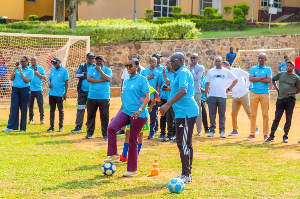 Minisitiri Nelly Mukazayire, Minisitiri Joseph Nsengimana n’abandi bayobozi mu nzego zitandukanye babanje gufungura ku mugaragaro amarushanwa ahuza amashuri ndetse banifatanya n’abanyeshuri gukina umupira w’Amaguru na Basketball.