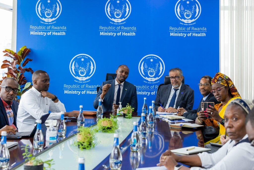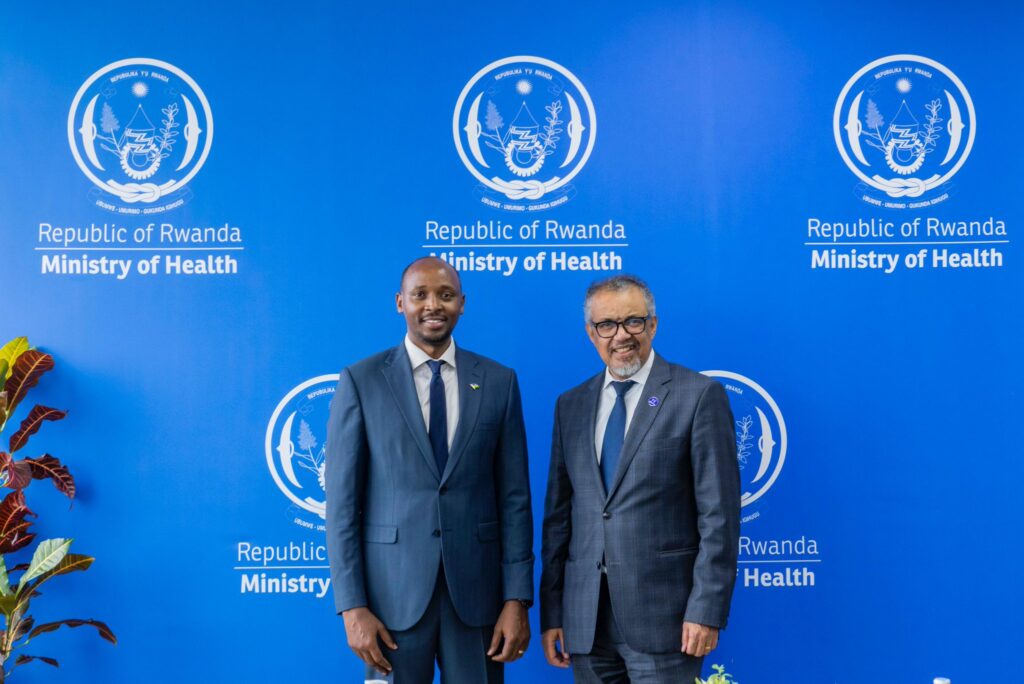 Minisitiri Dr. Sabin Nsanzimana n’Umunyamabanga wa Leta muri iyo Minisiteri, Dr. Yvan Butera bakiriye Umuyobozi Mukuru w’Ishami ry’Umuryango w’Abibumbye ryita ku Buzima (OMS), Dr. Tedros Adhanom Ghebreyesus uri mu ruzinduko rw’iminsi ibiri mu Rwanda.