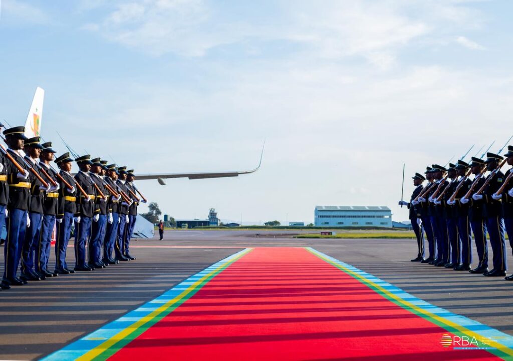 Akigera ku kibuga mpuzamahanga cy’indege cya Kigali, yakiriye na Perezida Paul Kagame, wari uri kumwe n’abandi bayobozi batandukanye.