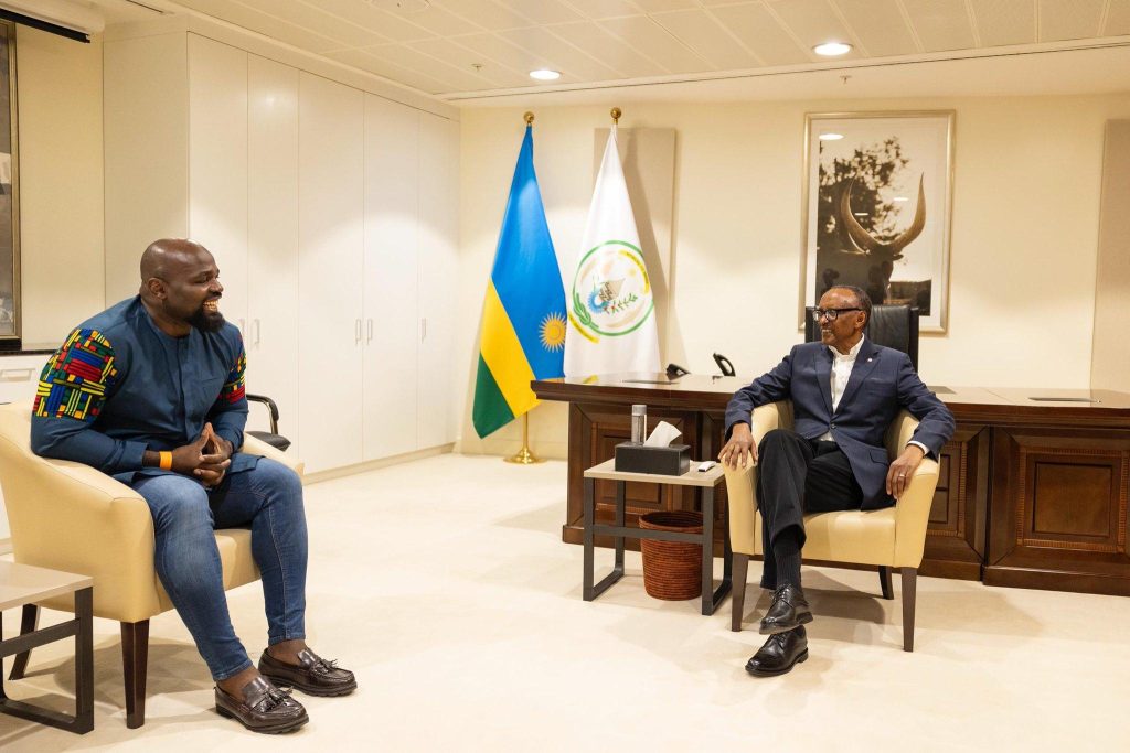 Perezida wa Repubulika Paul Kagame, yahuye n’umukinnyi w’iteramakofe wabigize umwuga Carlos Takam, bagirana ibiganiro.