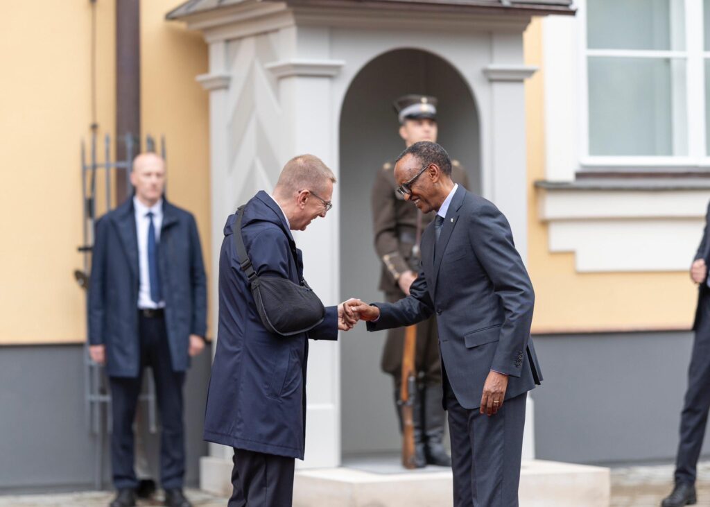 Mu gitondo cyo kuri uyu wa Gatatu, Perezida Paul Kagame yakiriwe na mugenzi we wa Latvia, Perezida Edgars Rinkēvičs bagirana ibiganiro.