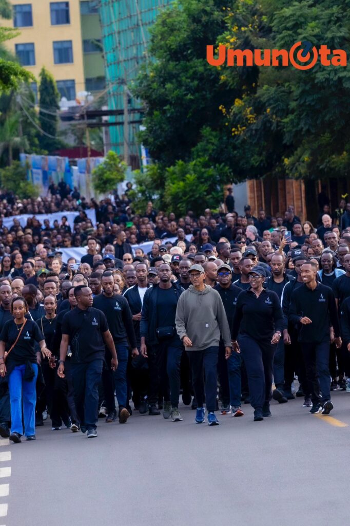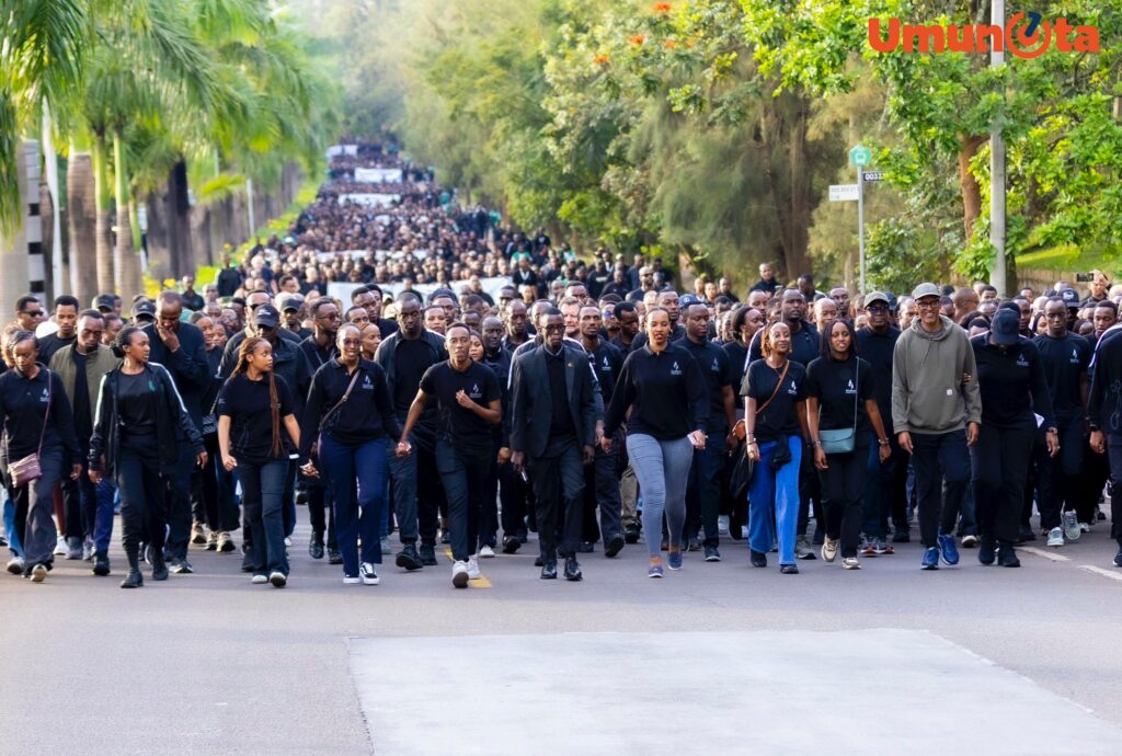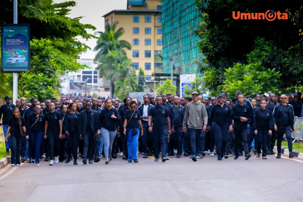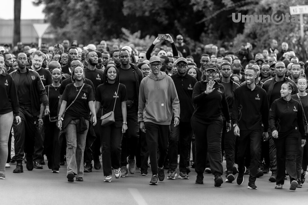 Perezida w’u Rwanda Paul Kagame yifatanyije n’Abanya-Kigali barimo abayobozi ndetse n’abaturage mu rugendo rwo Kwibuka no guha icyubahiro abazize Jenoside yakorewe Abatutsi mu 1994.