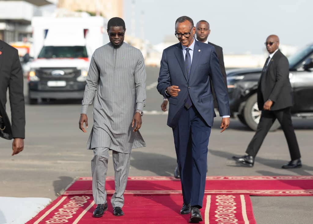 Perezida Kagame yakiriwe na mugenzi we wa Senegal, Bassirou Diomaye Faye.
