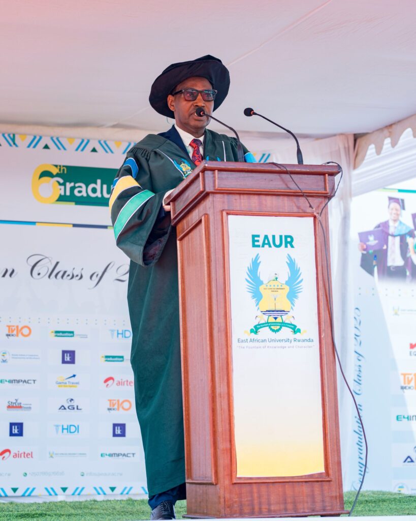 Umuyobozi Mukuru wa Kaminuza ya EAUR, Prof. Kabera Callixte, yabwiye abasoje amasomo ko amasomo basoje abaha ubushobozi bwo guhangana n’ibibazo aho kuba ibibazo ubwabo.