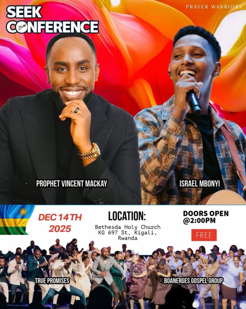 Prophet Vincent Mackay ukorera ivugabutumwa muri Leta Zunze Ubumwe za Amerika yatumiye Umuhanzi Israel Mbonyi, Itsinda ryo kuramya no guhimbaza Imana rya True Promises na Boanerges Gospel Group mu gitaramo yise “Seek Conference Rwanda 2025”.