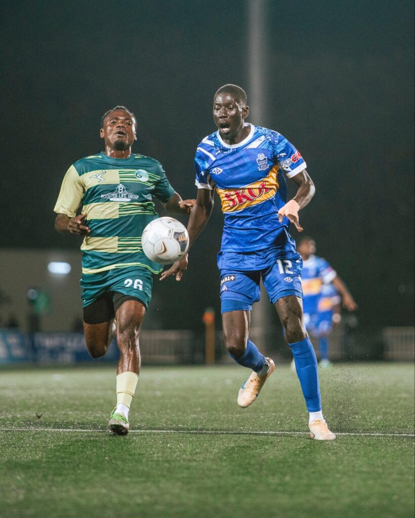 Ku munota wa 41 w’igice cya mbere, rutahizamu wa Rayon Sports Fall Ngagne yacomekewe umupira mwiza na Olivier Kwizera maze awushyira ku gituza neza ariko ageze imbere y’izamu rya Gicumbi FC ryari ririnzwe na Matondo Mechack ateye umupira unyura ku ruhande gato