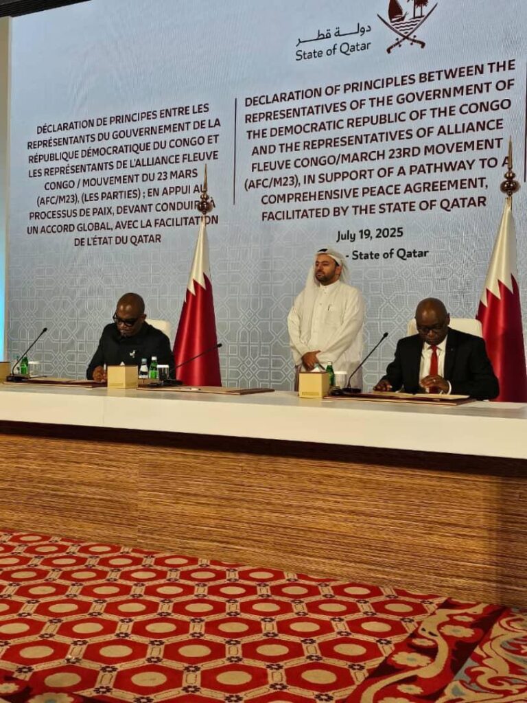 Nyuma y’iminsi irindwi i Doha muri Qatar harimo kubera ibiganiro by’amahoro hagati ya Repubulika Iharanira Demokarasi ya Congo n’ihuriro rya AFC/M23, intumwa z’impande zombi zashyize umukono ku inyandiko igaragaza amahame y’inzira iganisha ku masezerano y’amahoro arambye.