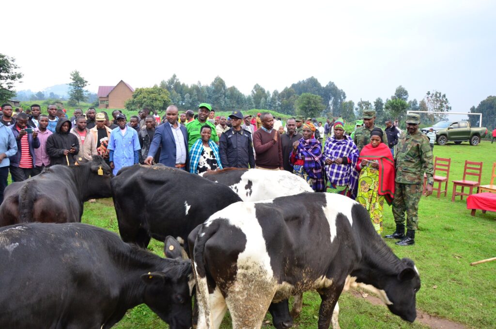Hanatanzwe inka ku miryango itanu, bahawe muri Gahunda ya Girinka yatangijwe n’Umukuru w’Igihugu, hagamijwe kubafasha kwikura mu bukene no guteza imbere imibereho yabo.