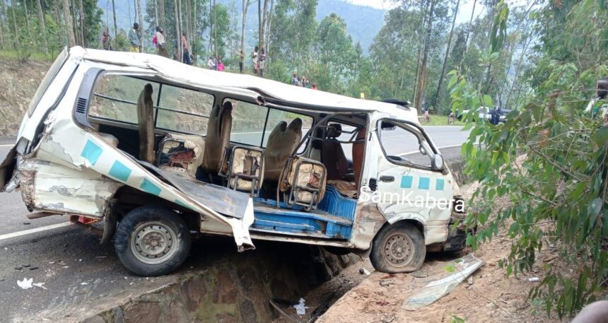 Ati ” Imodoka ya Hiace Minibus yari itwaye abajyaga kuri paruwasi ya Tumba , bageze mu Mudugudu wa Gashoro, umushoferi bitewe nuko aho hantu hateye yihutaga, ni mu ikorosi, mu gukata ikorosi , agonga umukingo imodoka igwisha urubavu, umuntu umwe yitaba Imana, abandi icyenda barakomereka.