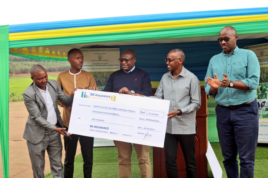Sosiyeti y’ubwishingizi, BK Insurance yagobotse abahinzi n’aborozi bo mu karere ka Rwamagana bahuye n’igihombo mu gihembwe cy’ihinga cya 2024B, muri gahunda ya Leta y’ubwishingizi bw’ibihingwa n’amatungo yiswe ‘Tekana’.