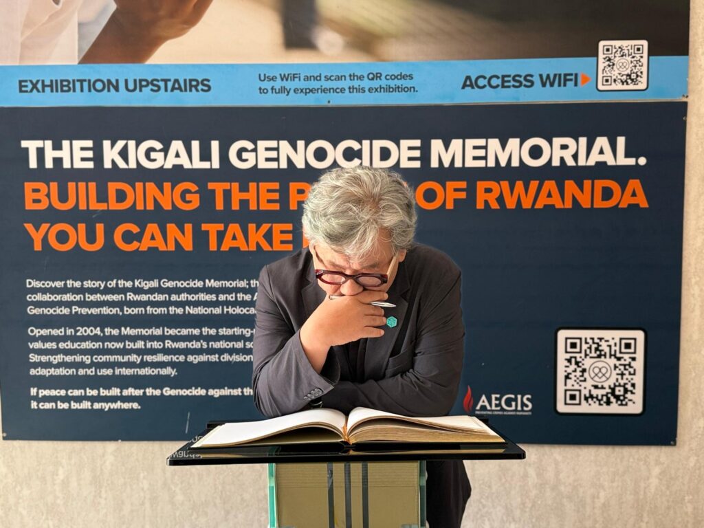 Sang-Hyup Kim yasuye uru rwibutso ku wa gatandatu, tariki ya 6 Nzeri 2025, yunamiye imibiri y’inzirakarengane zazize Jenoside yakorewe Abatutsi mu 1994, ziharuhukiye.