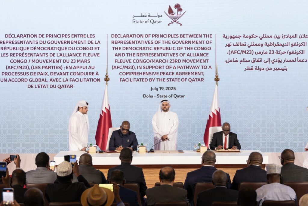 Ati : “Itanyandiko ikubiyemo mahame yasinyiwe i Doha uyu munsi ni intambwe ikomeye mu gukemura amakimbirane yo mu burasirazuba bwa RDC binyuze mu nzira y’amahoro, hakemurwa impamvu muzi z’amakimbirane no kugarura amahoro n’ituze mu karere.”