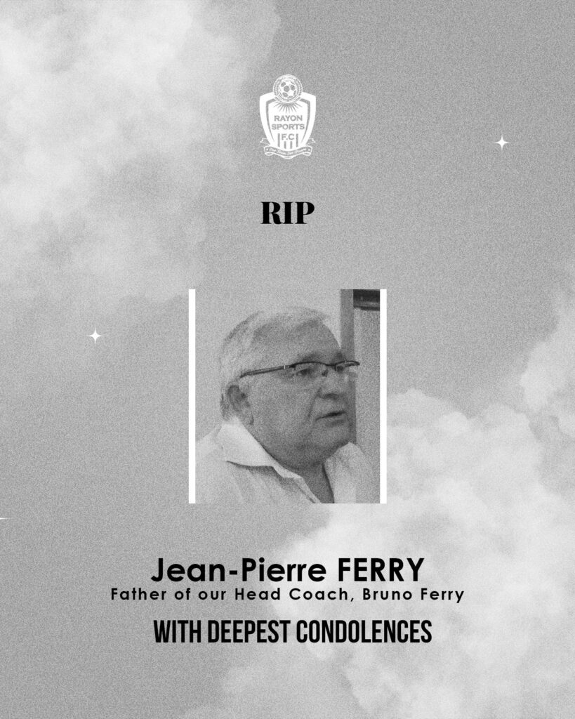 Amakuru yuko Jean Pierre Ferry yitabye Imana, yemejwe n’ikipe ya Rayon Sports ibinyujije ku mbuga nkoranyambaga zayo aho yatangaje ko yifatanyije n’umutoza Bruno Ferry mu bihe bitoroshye arimo byo kubura umubyeyi we witabye Imana azize uburwayi yari amaranye iminsi.