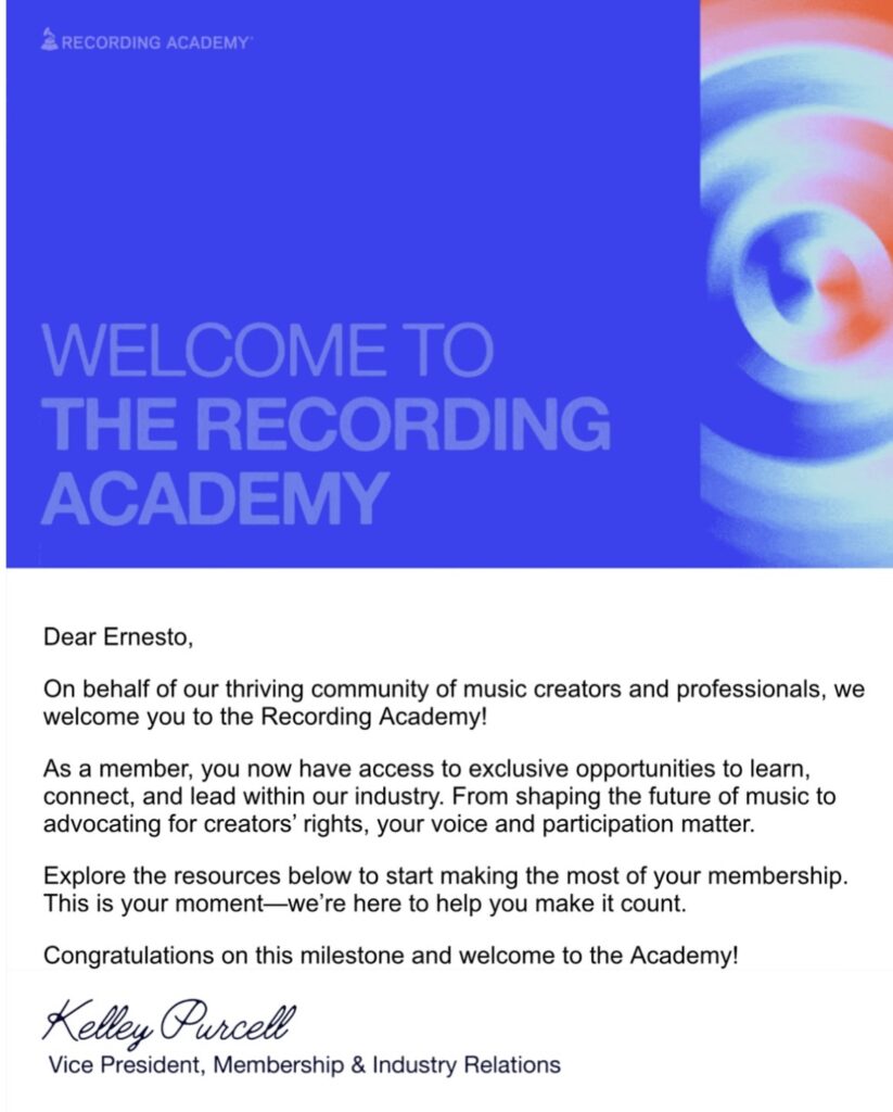 Kuba Ugeziwe Ernesto yabaye umunyamuryango wa Recording Academy bituma agira uruhare mu gutoranya abahanzi bashyirwa ku rutonde no gutora abazahabwa ibi bihembo.