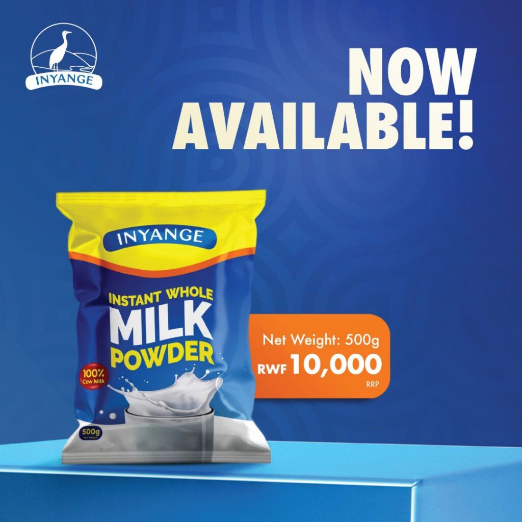 Bagize bati “ Mwaradusabye , twarabyumvise . Uyu munsi twashyize hanze amata y’ifu y’INYANGE , aho aboneka ku dusashi twa 1kg na 500 g.”